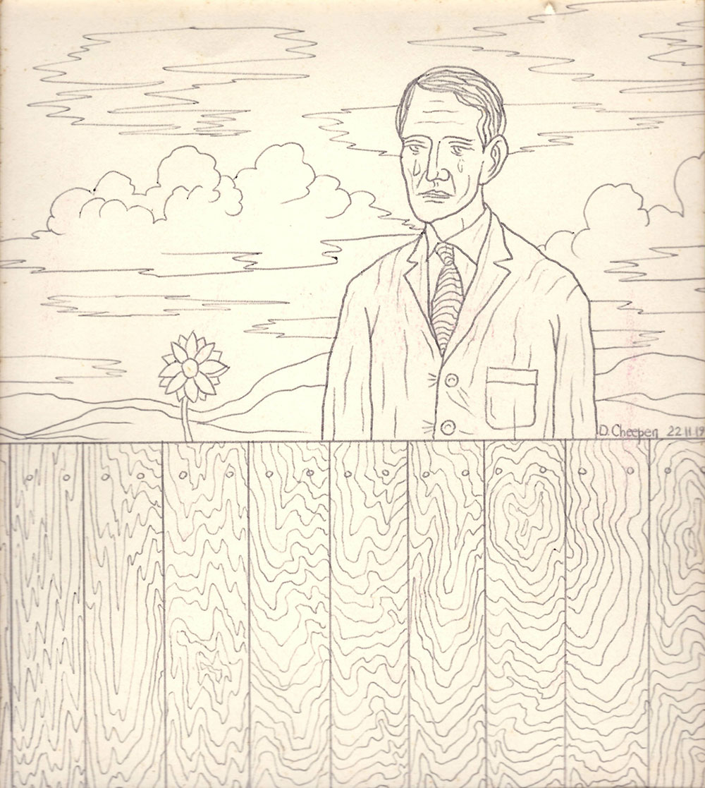 'Old Friends'. Pencil on paper, 4"x8⅛", 1976