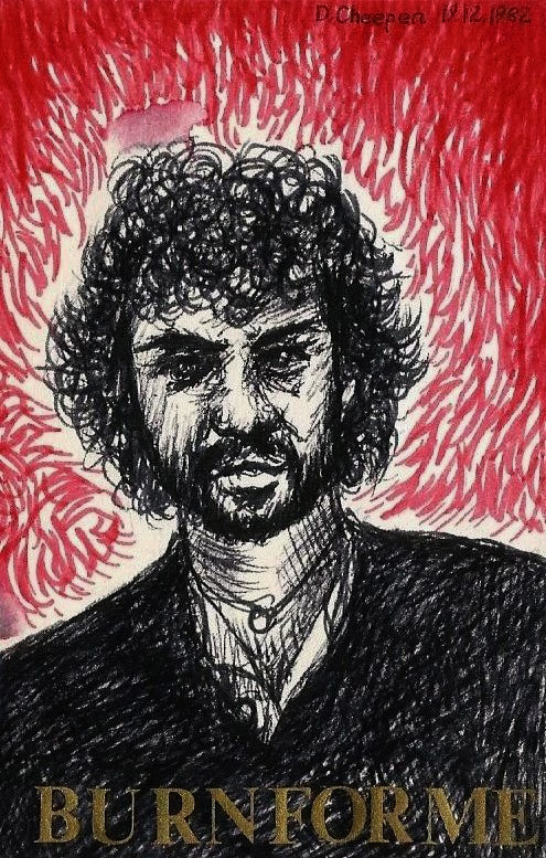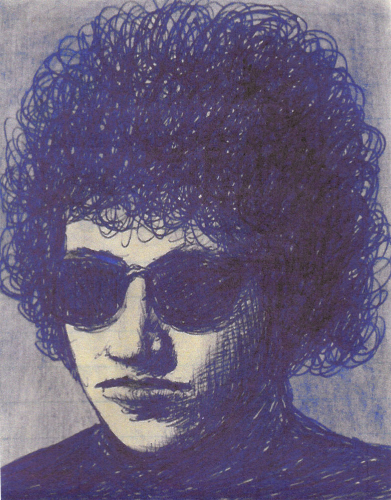 'Tangled Up in Blue'. Ink and watercolour on paper, 4"x3", 1975