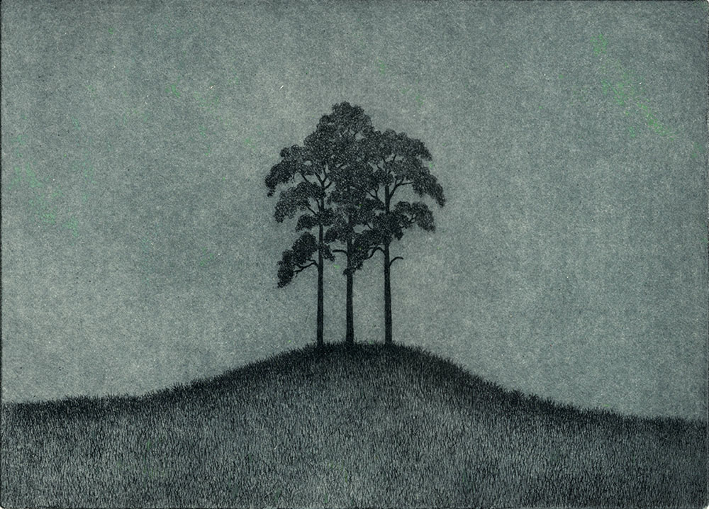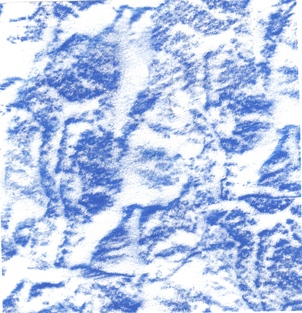'Above the Snowy Mountains'. Coloured pencil (frottage), 4⅛"x4", 1975