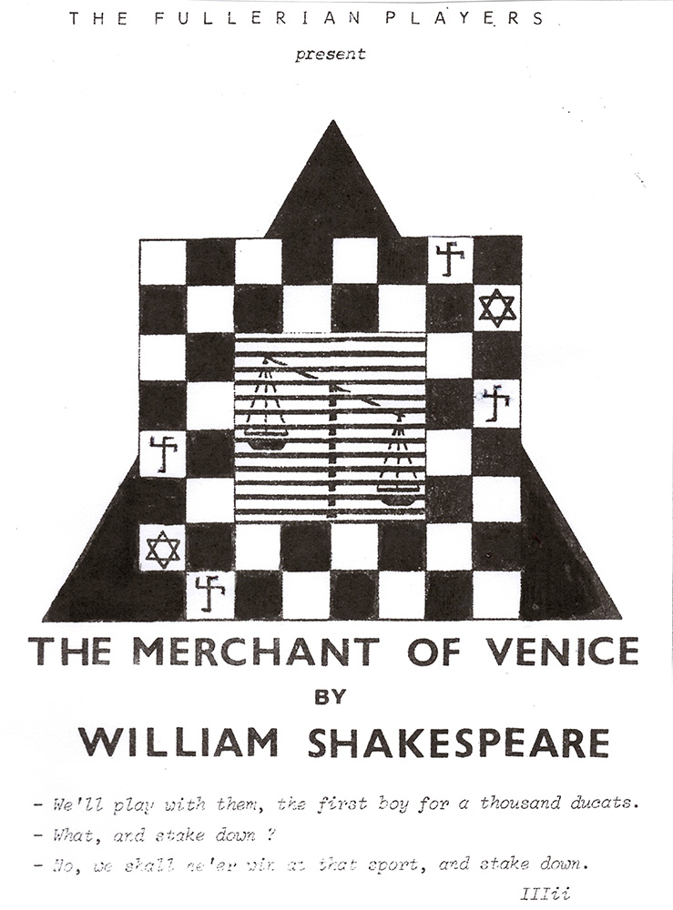 Cover of programme for production of William Shakespeare's 'The Merchant of Venice'.