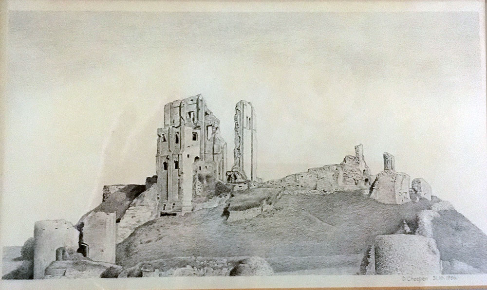 Pencil on paper, 4½"x8", 1986, Reproduced in 'Everybody's Historic England' by Jonathan Kiek, Collection of Dr Christine Cheepen, Hertfordshire