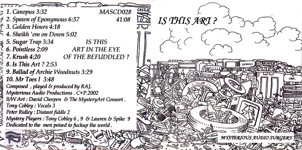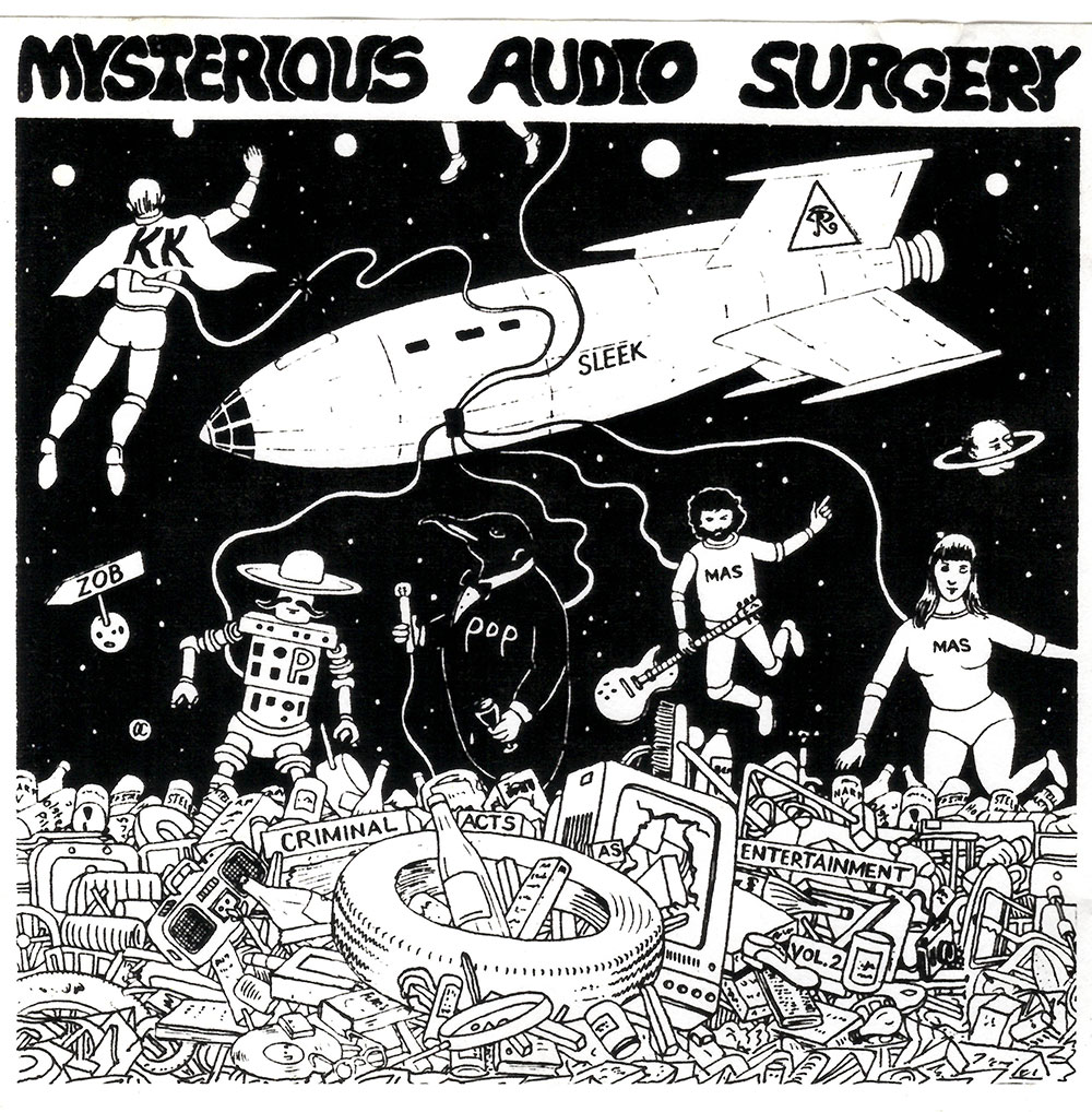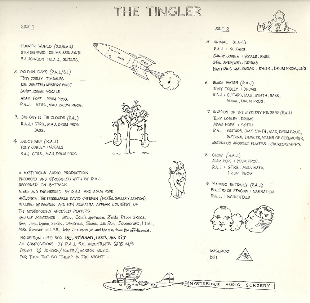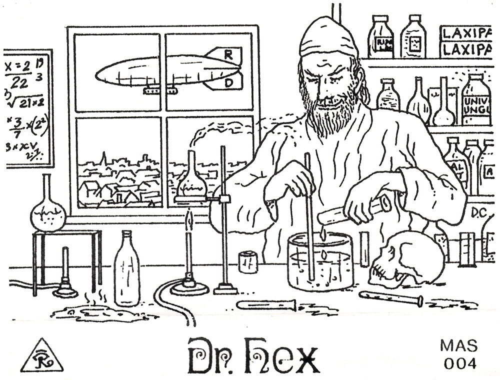 Ink on paper, 8"x5½", 1992, For Rob Johnson's Mysterious Audio Surgery Helston, formerly, Borehamwood.