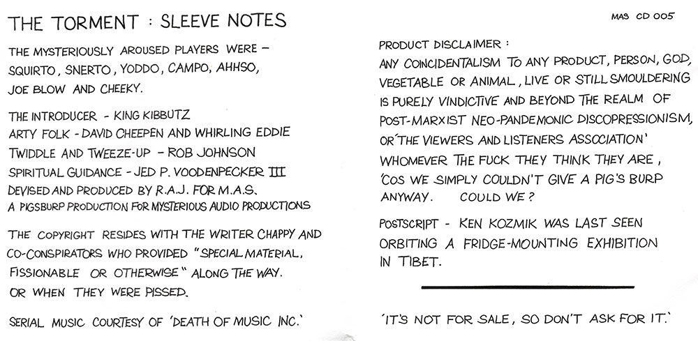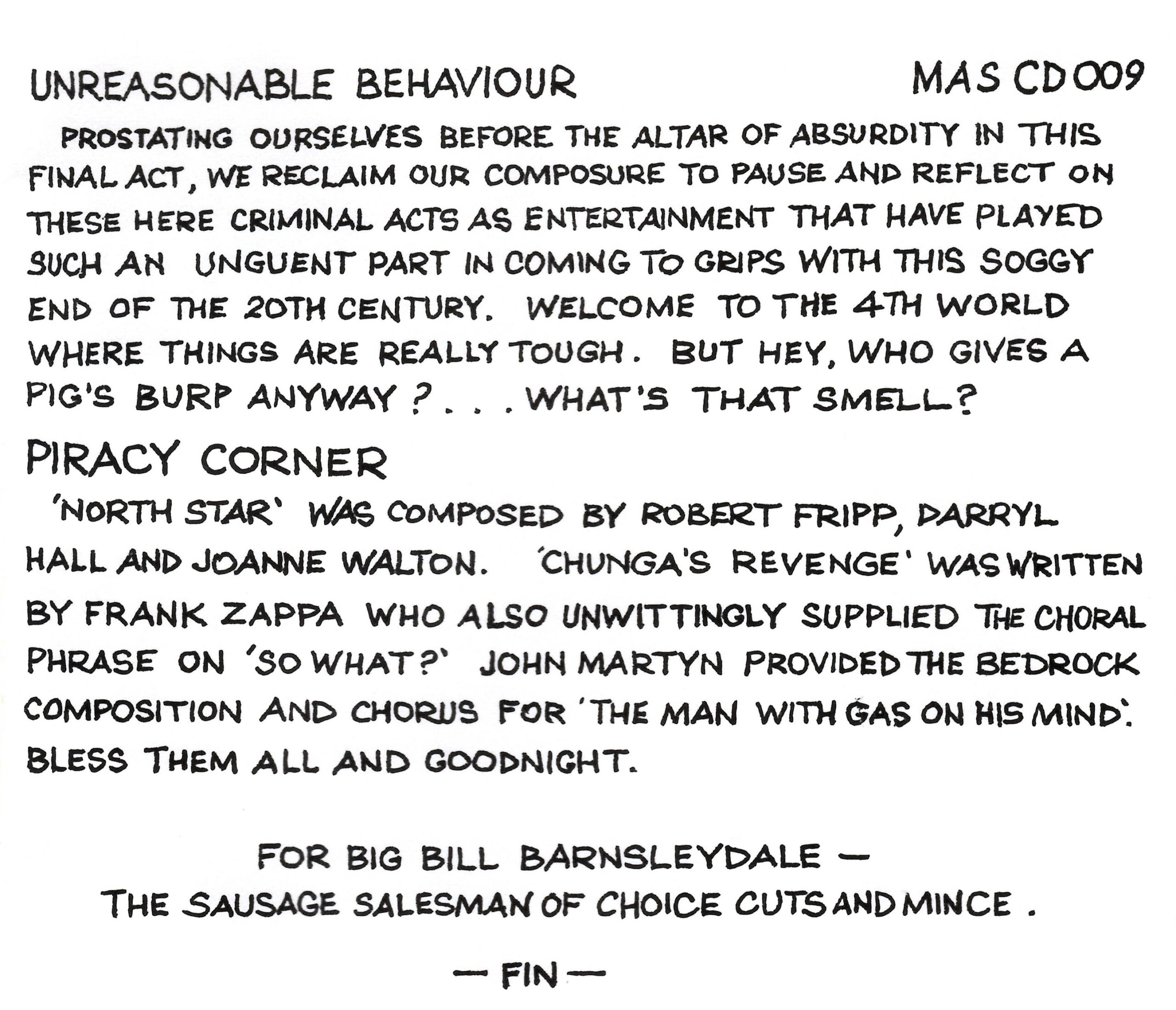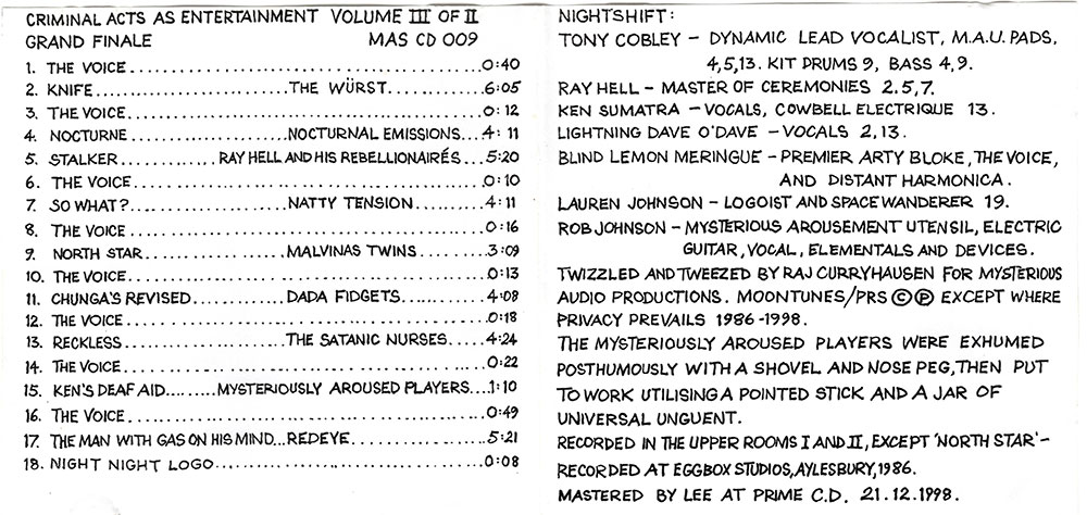 'Criminal Acts as Entertainment - Volume 3' CD insert.